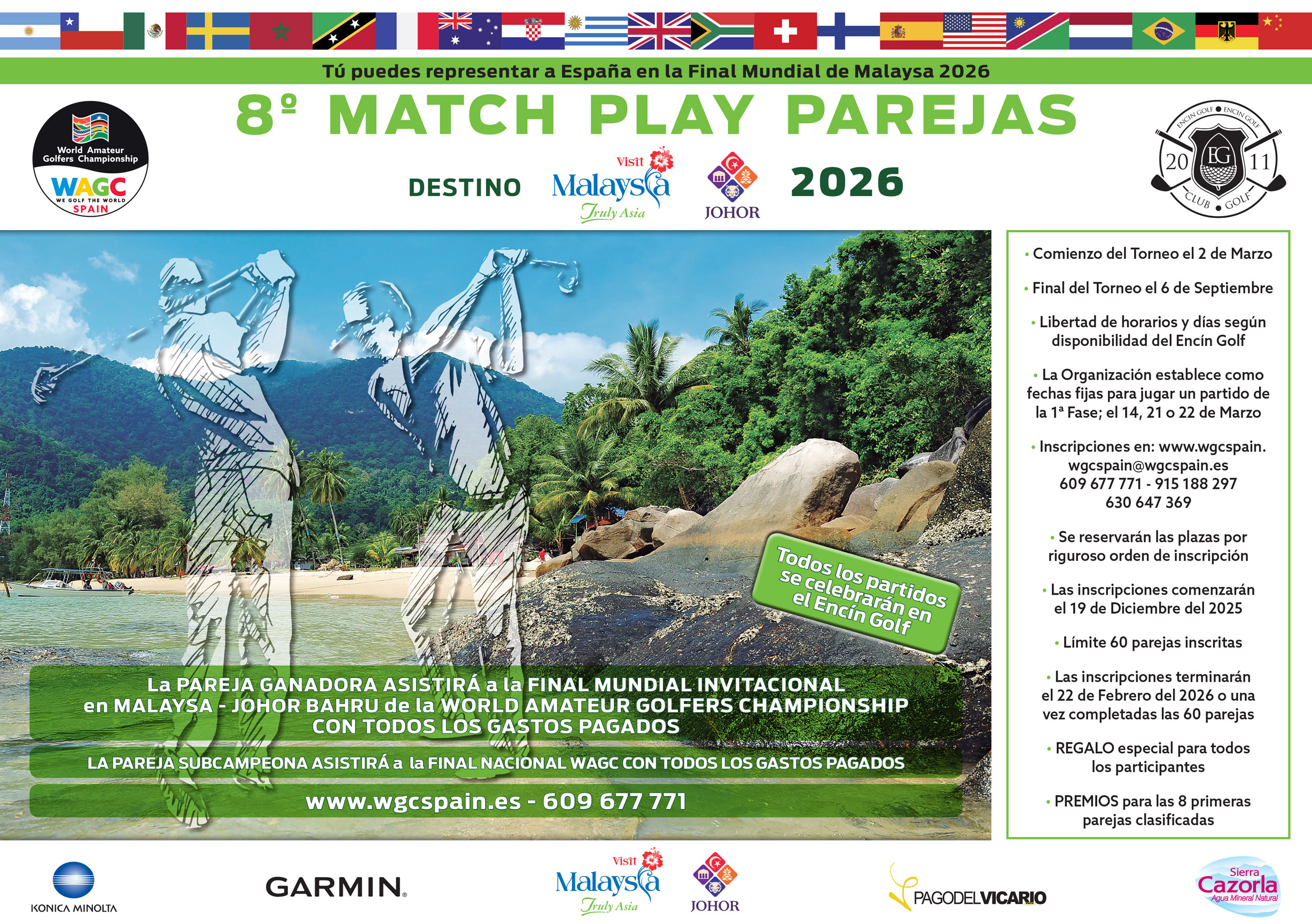 Recordar que los finalistas lucharán por clasificarse como mejor jugador en su categoría: en total, cinco ganadores representarán a España en la Final Mundial que se celebrará en Malasia junto a golfistas amateurs de más de 40 países. Paralelamente se realizará un Torneo Invitacional que abre nuevas posibilidades de viajar a Malasia con todos los gastos pagados.
