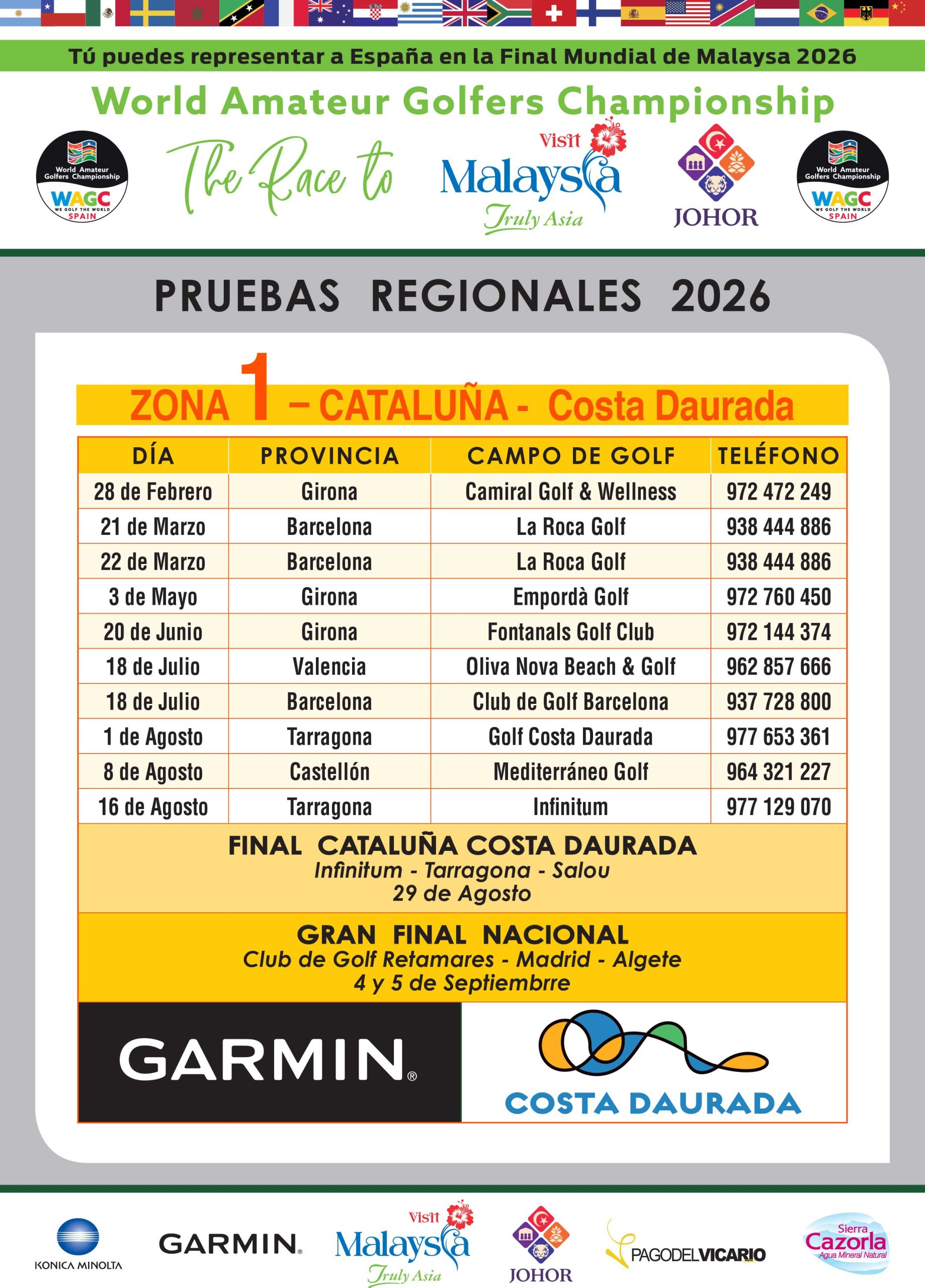 WAGC TOUR ESPAÑA 2026 – TORNEO POR MESES